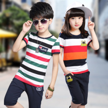 断码清仓童装女童男童夏装宝宝儿童条纹短袖T恤大童运动套装
