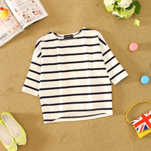黑白条纹t恤女夏棉短款上衣中袖短袖宽松大码显瘦韩国韩范打底衫
