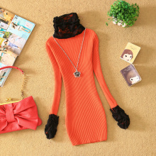 打底毛衣裙女秋冬中长款韩版套头加厚打底衫纯色修身包臀堆堆高领