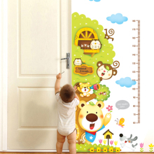 卡通动物树儿童房间墙上贴画小孩宝宝测量身高贴可移除墙贴身高尺