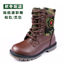 2017春秋新款儿童真皮鞋男童中筒马丁靴大童高帮靴迷彩鞋休闲靴子