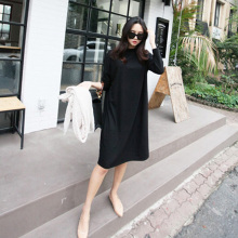 2017春装新款女韩版宽松休闲显瘦纯棉一字领中长款春秋大码打底裙