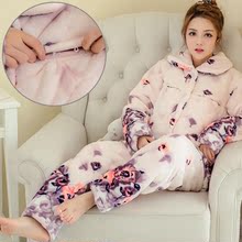 哺乳睡衣秋冬法兰绒月子服三层夹棉加厚产后珊瑚绒孕妇睡衣秋冬季