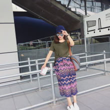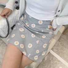 Q 夏新款韩版百搭显瘦条纹花朵A字裙包臀半身裙潮1352