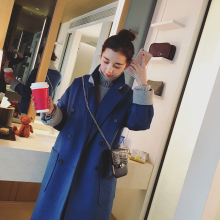 Q2016K韩版新款中长款毛呢外套双排扣西转领纯色呢子大衣女1088