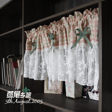 【可定制】田园小清新粉格子花白色蕾丝纱边 半帘 帘头 柜门帘