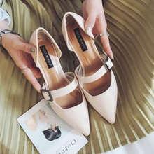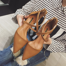2017春款新品交叉绑带尖头浅口镂空女鞋 高跟粗跟优雅单鞋