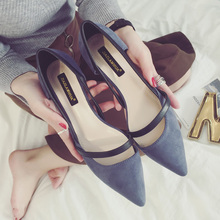 2016秋季新款绒面时尚绒面侧镂空交叉绑带尖头浅口高跟细跟单鞋女