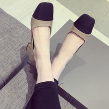 韩版春款时尚拼色方头浅口单鞋 简约气质粗跟嗯中跟休闲女鞋