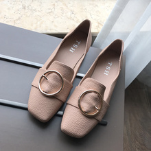韩版春款新品方头皮带扣小白鞋 简约百搭平底休闲女鞋单鞋