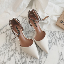 2017春款新品优雅小尖头白色镂空女鞋 脚踝绑带单鞋中细跟单鞋