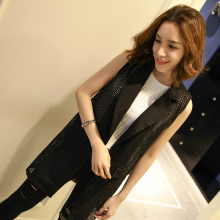 无袖西装马甲女薄款中长款女士夏季2017新款西服镂空马夹背心外套