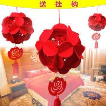结婚用品红绣球婚房布置无纺布喜字挂件 创意婚庆宫灯笼新房装饰