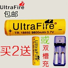 CREE强光手电18650锂电池大容量3.7V买2送环高双槽智能充电器4.2V