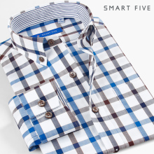 SmartFive 扣领商务休闲格子衬衫男长袖修身纯棉拼接青年格纹衬衣