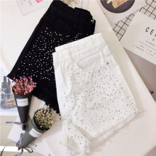 2017新款女水钻钉珠牛仔短裤女高腰显瘦毛边热裤学生阔腿裤潮