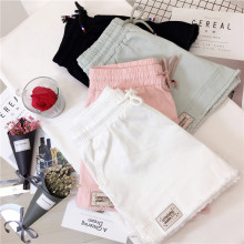 糖果色棉布短裤女夏季阔腿裤松紧腰系带宽松热裤大码休闲毛边短裤