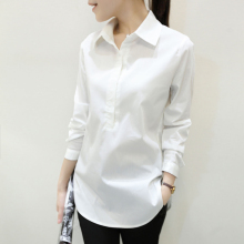 衬衫女长袖2017春装韩版新款大码女装中长款白色休闲百搭打底衬衣