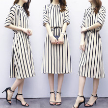 连衣裙女夏装2017新款女装气质时尚韩版中长款条纹修身超显瘦裙子