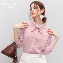 洛诗琳2017年春装新款 百搭修身衬衫上衣 长袖宽松纯色雪纺衬女