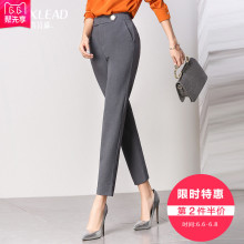 洛诗琳2017年春装新品直筒灰色西装裤女小脚九分裤休闲百搭西裤