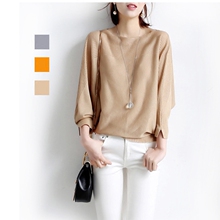 舒适随意 小慵懒 丝滑感花式横纹编织蝙蝠袖针织衫