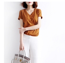 都市潮流色 别致背后十字拼接设计V领修身TEE