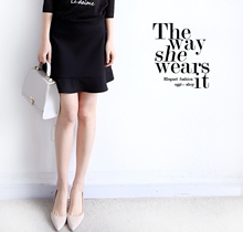 高性价比 专柜2K+客供斜纹荷叶边下摆小A半身裙 17春夏女