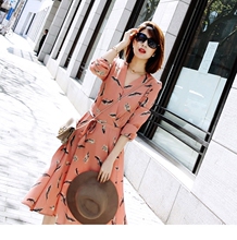 升温日优选 低调复古色羽毛印花立体斜裁微喇长款连身裙