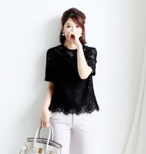 法系优雅 简洁小圆领蕾丝罩衫 含吊带 17春夏女