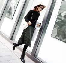 限量推荐!独家高温压褶半松紧弹力腰羊毛百褶半裙