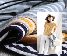 清爽百搭 含真丝航海风V领针织衫 套头衫 17春夏女
