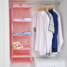 纳衣阁桃皮绒悬挂式储物袋可水洗衣柜5格收纳挂袋橱柜整理袋盒