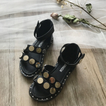 女童凉鞋靴欧美平底露趾2017新款夏中大童铆钉公主鞋韩版童鞋潮鞋