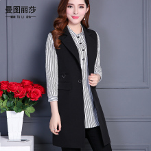 西装马甲女中长款2017春秋装新款大码无袖外套修身显瘦长款马夹潮