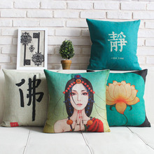 家居沙发靠垫 中式古典禅意创意莲花办公室沙发床头腰靠棉麻抱枕