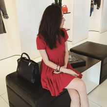 韩国代购2016夏装新款女装a字蓬蓬连衣裙夏天红色小香风裙子短裙