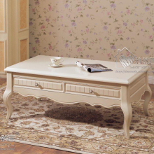 韩式田园客厅茶几 白色欧式长方几带抽屉 象牙白欧式实木茶几