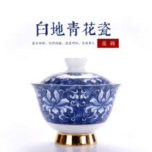 大号景德镇白瓷功夫茶具青花瓷盖碗茶杯薄胎手工三才茶碗盖碗包邮