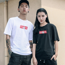夏季原创宽松短袖男原宿BF风竖中指贱猫潮牌印花情侣T恤女半袖TEE