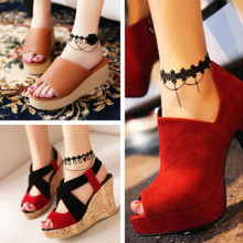 新款韩版蕾丝脚链韩国时尚蝴蝶结欧美脚饰星星复古女首饰品配饰