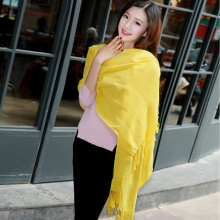 纯色围巾女冬季韩版加长加厚披肩两用长款流苏保暖百搭围脖姜黄色
