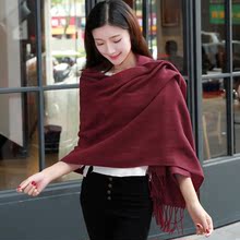 纯色围巾披肩两用长款百搭保暖发女士秋冬季韩版流苏仿羊绒酒红色