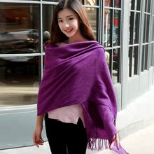 韩版秋冬季女围巾披肩两用流苏纯色围脖长款学生百搭仿羊绒紫红色