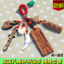 宝宝辟邪手链安全挂件平安护身符桃木猪惊狗牙朱砂婴儿压惊吓哭闹