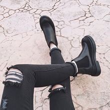 欧美2016新款复古圆头平跟套筒防水台短靴女英伦及裸马丁靴骑士靴