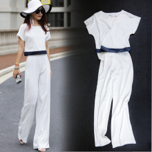 女装2017夏季新款白色雪纺长裤女潮 夏装高腰阔腿裤套装两件套