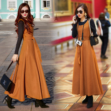 濛濛家 女装2017春季新款无袖马甲打底裙 春装毛呢长款背带连衣裙