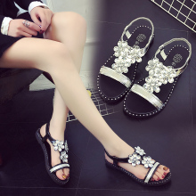 2017夏季新款厚底平跟水钻凉鞋女学生百搭平底沙滩鞋罗马女鞋