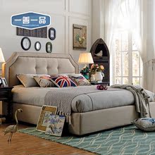 一善一品 欧式古典美式布艺床1.5M1.8米大床棉麻双人床家具1605